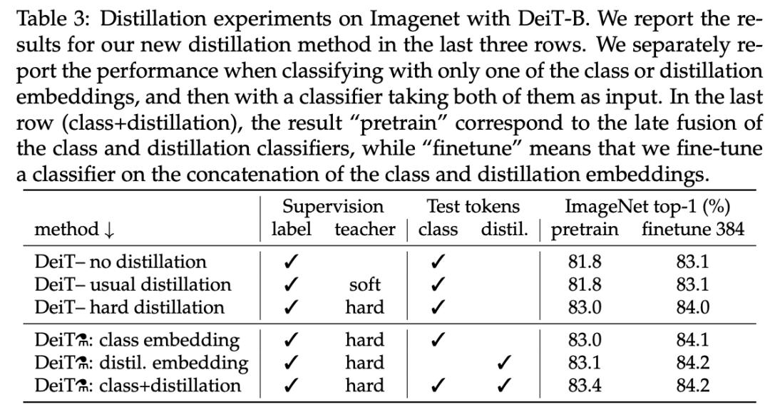 实验发现,使用 Convnet 做教师网络的性能要优于使用 transformer。下表 2 对比了使用不同教师架构的蒸馏结果: