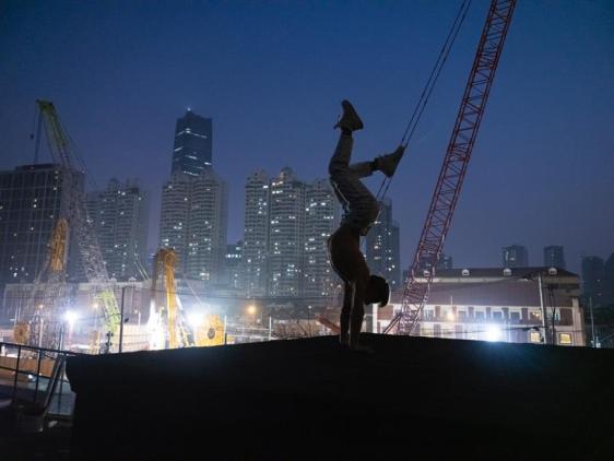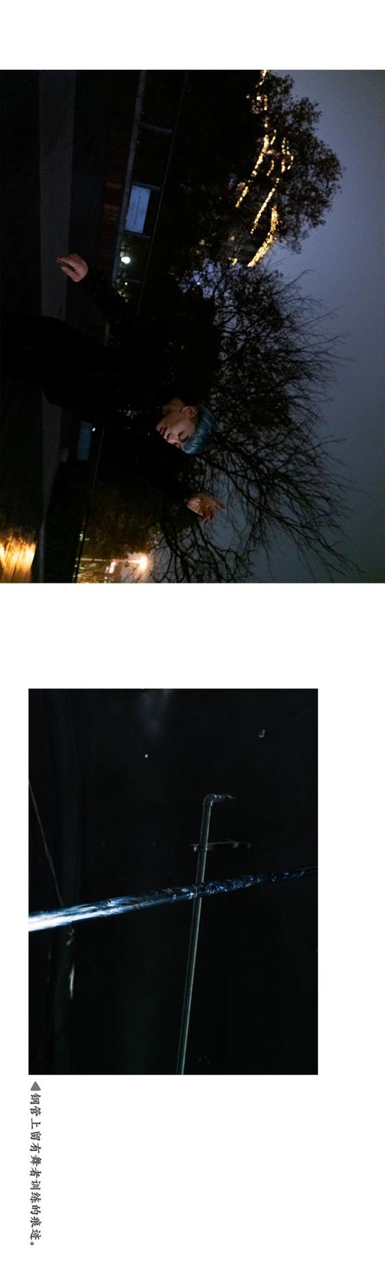 夜幕降临,柯宏在舞室外独自练习。摘要:钢管舞起源于美国建筑工地,在其发展史中,一度因穿着暴露、动作挑逗,被贴上“色情”标签。