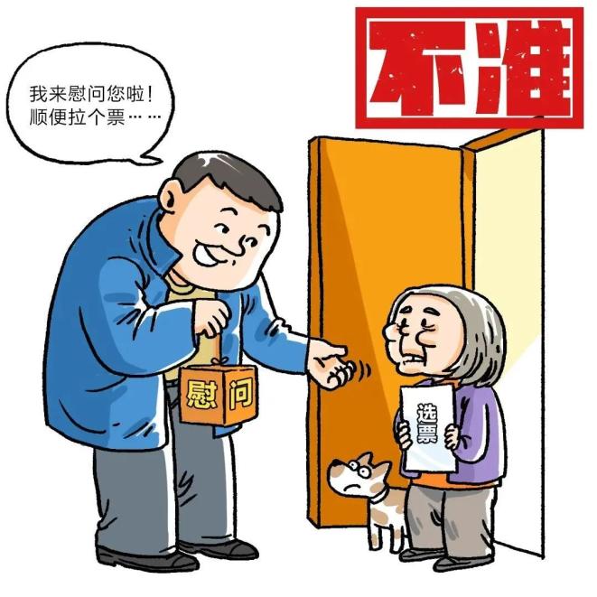 3、不准以慰问、帮扶名义向选举人变相赠送财物,或为选举人缴纳各种费用进行拉票。
