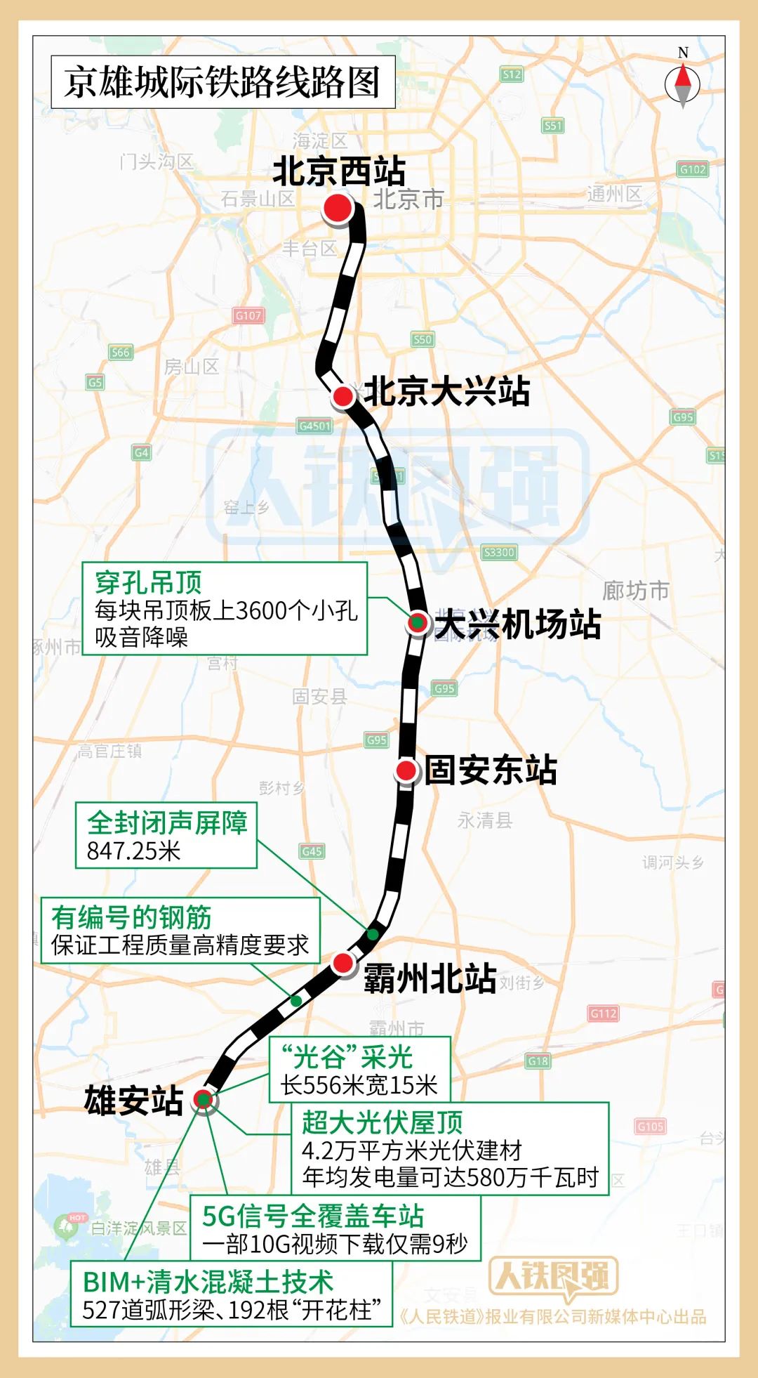 自2018年2月28日开工以来,国铁集团围绕“精品工程、智能工程、绿色工程、人文工程”总目标,坚持高标准起步,高起点建设,高质量推进京雄城际铁路建设,从数字京雄、绿色京雄、智能京雄等方面开展创新攻关,全力将京雄城际铁路建成中国一流、世界领先的高铁建设典范和标杆。