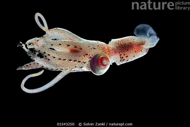 不少酸浆鱿,尤其是幼体具有长的眼柄。图片来源:Oceanwide Images