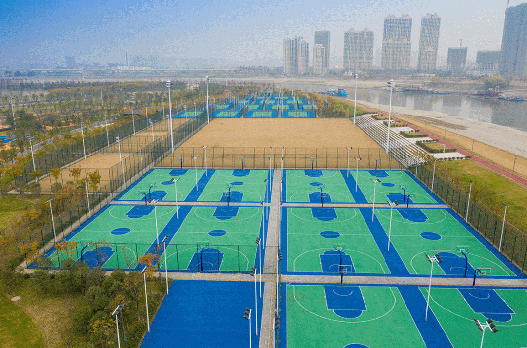 体育公园负责人介绍,除足球场,体育公园内还为市民们设置了篮球场、网球场、游泳池、室外自行车道等。汉阳江滩