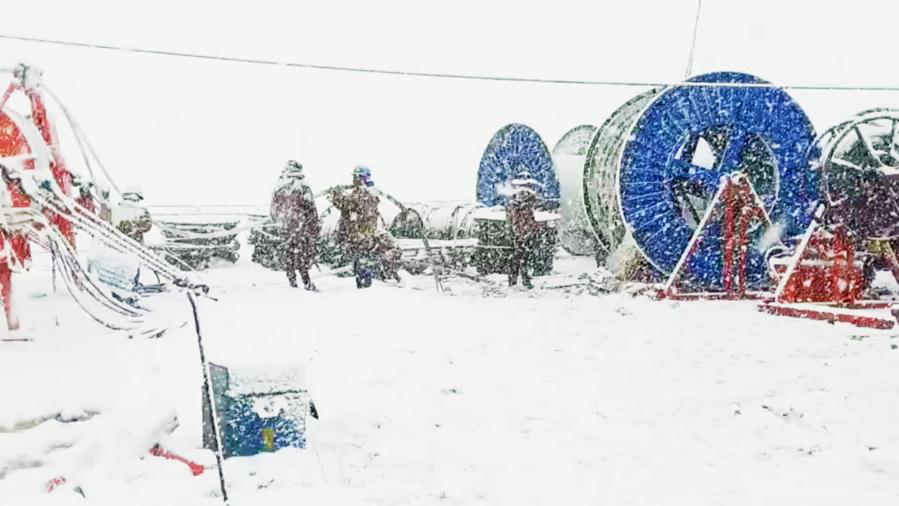 然而,恰逢高寒时节,复工后的青豫工程一度千难万阻。“青豫工程复工的时候,这里的好多施工区段还是一片积雪。”安宁说,作业人员陷入积雪、“挂在”高空的情况不时发生,与暴雪、大风、严寒等恶劣天气作斗争成了施工人员的日常。