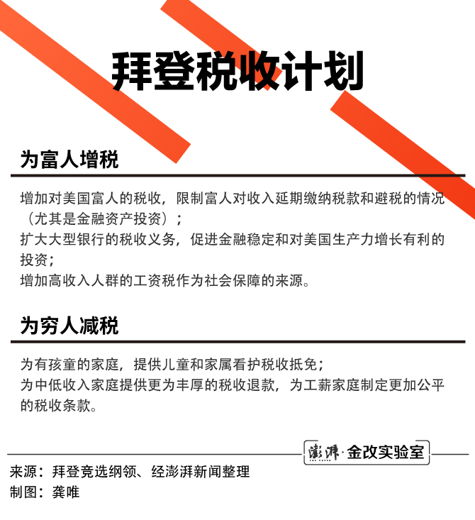 在拜登的所有经济政策中缩小贫富差距最重要的政策便是对富人与大企业增税。拜登描述的目标是:在10年内筹集3万亿至4万亿美元,用于教育、医疗和其他社会项目。