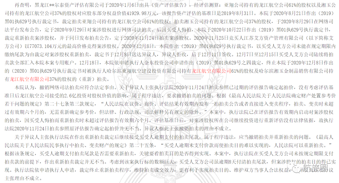 中国裁判文书网一份执行裁定书显示,以约7.71亿竞得龙江航空98%股权项目的江苏艾方资产管理有限公司。虽未能在12月7日前的规定期限内缴纳尾款,但江苏艾方已在12月7日至12月15日陆续将拍卖款全部汇入法院本案专用账户。