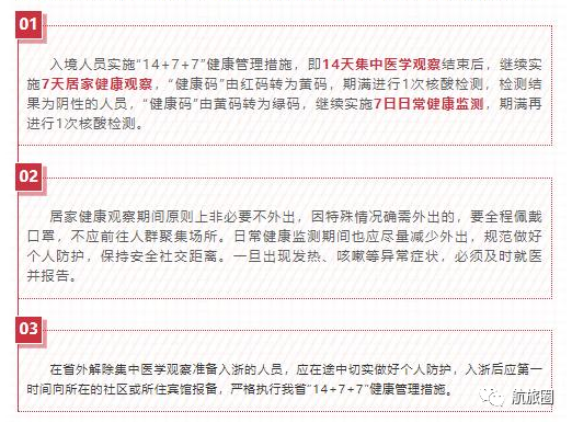 4、浙江实施入境“14+7+7”健康管理