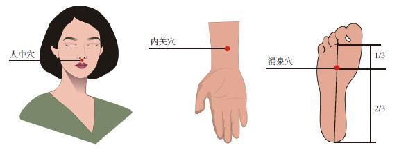 4.可用手指按压人中(位于鼻下,上嘴唇沟的上1/3与下2/3交界处)、百会(头顶正中线与两耳尖连线的交叉处)、内关(人体的前臂掌侧,从近手腕之横皱纹的中央,往上约三指宽的中央)、涌泉(采用正坐或仰卧、跷足的姿势,涌泉穴位于足底前部凹陷处第2、3趾趾缝纹头端与足跟连线的前1/3处)等穴,或吸入醋,或向面部喷少量凉水和额头上置湿凉毛巾刺激可以帮助清醒。