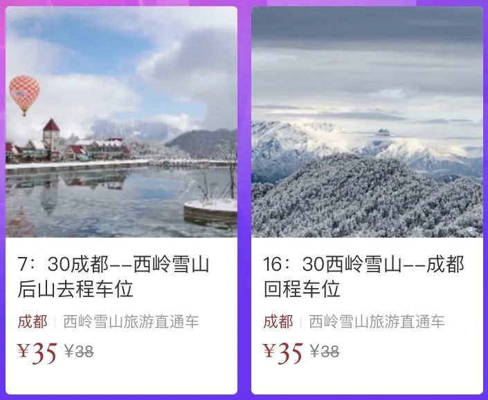 今冬成都及川内多个城市开启西岭雪山直通车首发!目前已开通了四条“文旅快巴”旅游直通车线路,分别为成都、德阳广汉、峨眉乐山、雅安眉山。直通车将把各个城市的市民及游客一站式带往滑雪胜地!