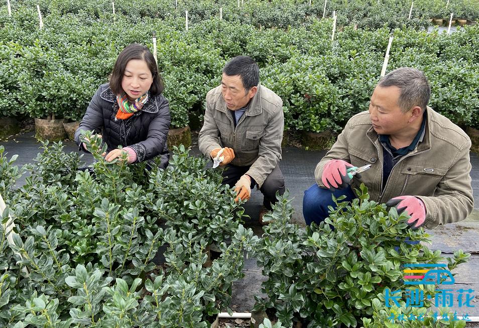 龙燕在绿色扶贫车间手把手教授建档立卡贫困户罗建国、苏建军珍珠红(无刺枸骨)盆景苗修剪技术。在今年的“两会”中,她带来了《关于加强政策引领,推动跳马苗木产业发展的建议》《跳马镇基本农田面积与实际种植状况相差过大的现象应引起重视的建议》的2个提案。