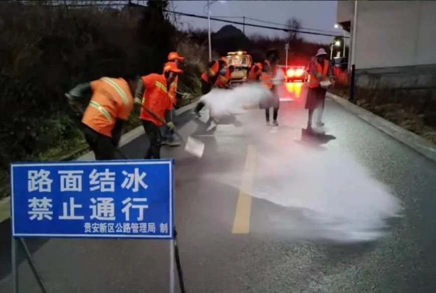 结冰路段可撒环保融雪剂,并设置安全警示牌。(梁帆 王曦尉 摄)临近年末,