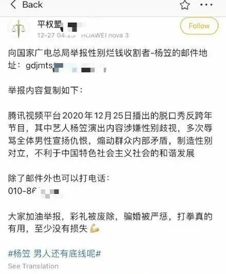 而真正使事态升级、将讨论拉入深渊的,是一封来自网友的举报信,他不想讨论,只想让杨笠彻底闭嘴。
