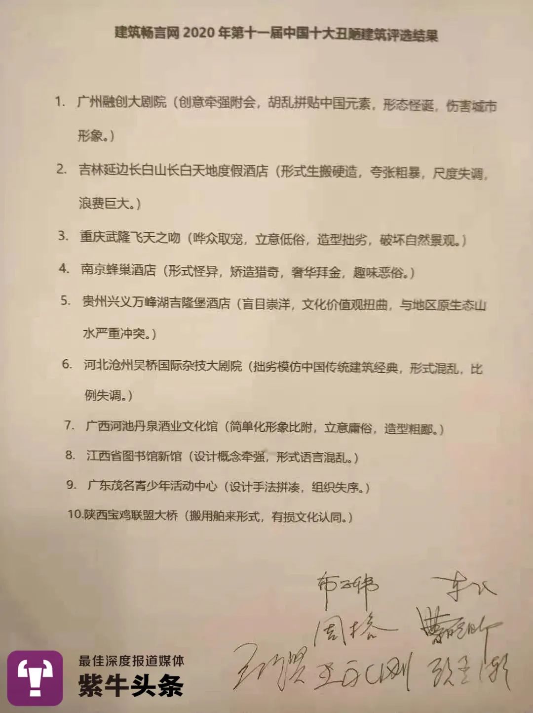 原标题:《【紫牛头条】南京一酒店上榜2020“十大丑陋建筑”,这份榜单你怎么看》