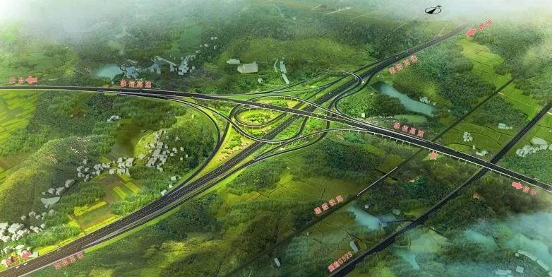 雄信高速珠玑北枢纽互通效果图雄信高速全长约41公里,双向四车道标准,时速120公里,设置服务区1处,高速出入口4处。项目位于韶关南雄,起于界址镇寨背以北粤赣省界,与韶赣高速公路相接,终于南雄珠玑镇。