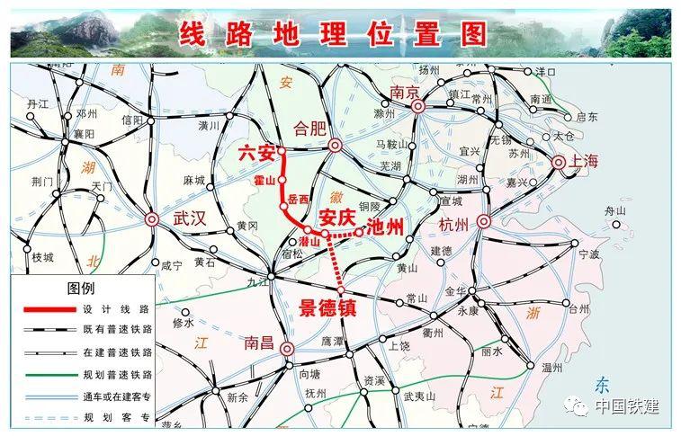 六庆铁路地理位置图六庆铁路由上海院总体设计。新建正线全长约168.3公里,设计时速250公里,全线设6座车站,总投资约243.8亿元。该项目是皖西南地区城际客运网的重要组成,也是长三角区域快速客运网的补充。项目建成后将承担起大别山革命老区对外联通主通道作用,形成皖西南地区连接省会合肥的城际通道和串联黄山、齐云山、九华山、天柱山、大别山“五山联动”的黄金旅游通道,对大力振兴皖西大别山革命老区、高标准建设皖南国际文化旅游示范区等具有重要意义。