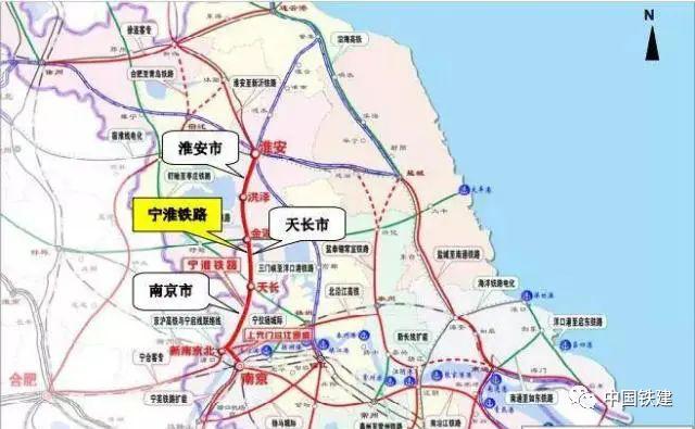 宁淮城际铁路地理位置图宁淮城际铁路由中国铁建大桥局集团等单位参建。线路全长200公里,其中安徽段全长44公里,新设天长1座车站,设计时速350公里,总投资70亿元。宁淮城际铁路是我国高速铁路网中的区域铁路连接线,是长三角城际铁路网的重要组成部分,同时也是国家淮河生态经济带重大基础设施支撑项目,将有助于构建形成鲁苏皖赣高速通道,加强山东半岛城市群、环渤海地区东翼与长三角城市群的联系。