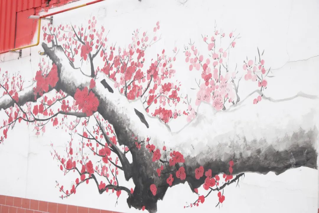 绿水青山环绕下,一排排红墙依次排列,红墙上或是民俗文化简介,或是气势磅礴的山水画,又或是一朵朵含苞欲放的红梅。古亭、党建长廊、文化广场……走进遮山镇夏庄村,时间仿佛停下脚步,一切显得如此恬静。