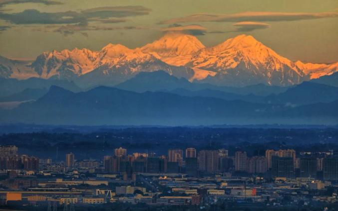 幸福来自于青山绿水。成都是全球唯一能够遥望5000米以上雪山的千万级人口城市。有数据统计,成都看雪山的天数2017年为50次,2018年为56次,2019年为65次……而2020年,成都有70次观山记录。