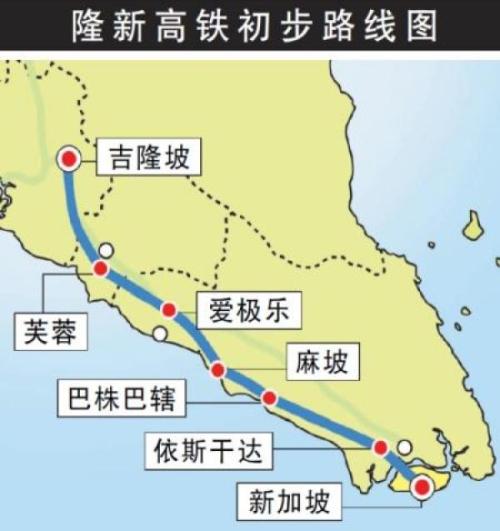 按照设计,马新高铁为双轨道运行,最高时速350公里,建成后从吉隆坡到新加坡只需90分钟。两地之间单程驾车需要超过4小时。