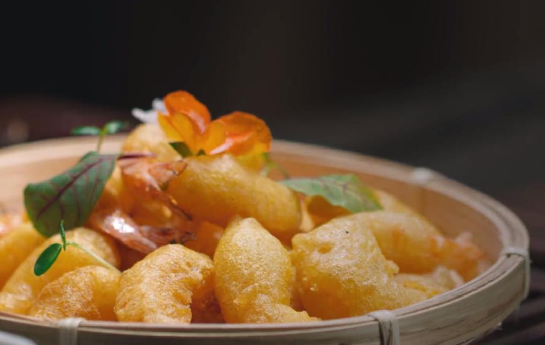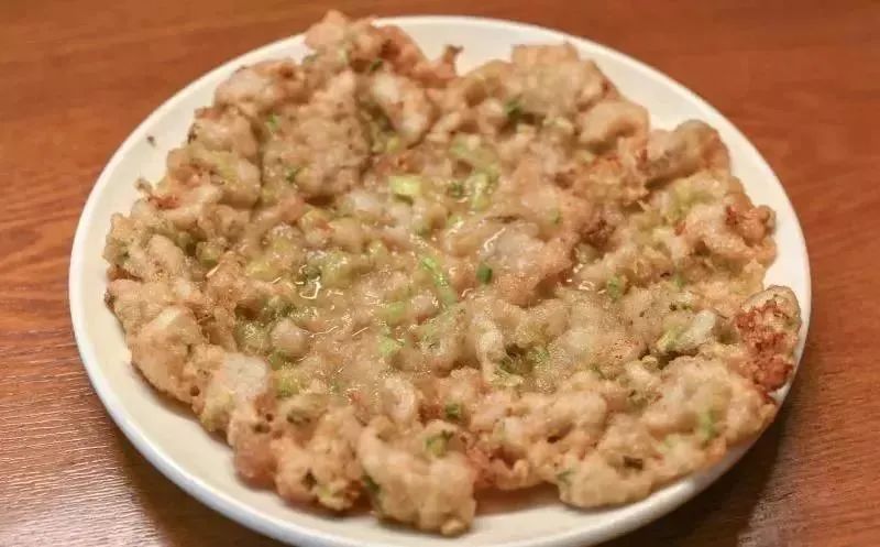泡虾是台州人平时的叫法,书面语则叫油鼓。泡虾的历史可追溯到晚清,路桥人办喜事、酒席时,会提前请厨倌来家里,将面粉搅糊,再放点葱花,炸成胖胖弯弯小尾巴形状的泡虾。现在物质丰富了,泡虾也变大了,里面可以放猪肉、鲜虾、墨鱼、葱等。漫步在路桥的大街小巷,一个不经意间,就能闻见泡虾香。