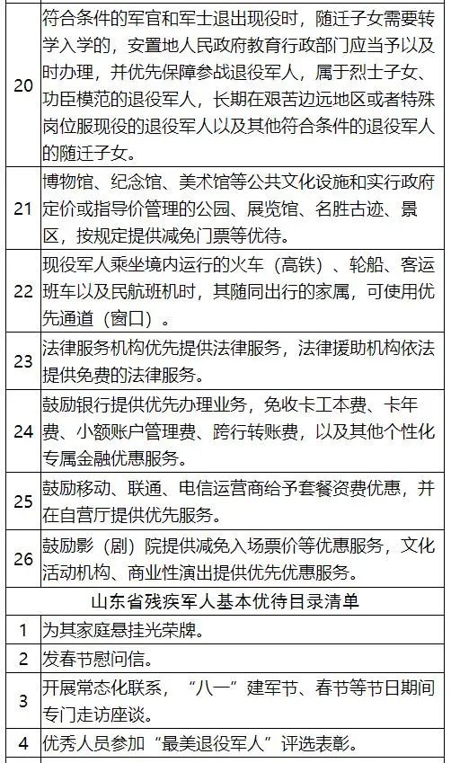 制定了山东省现役军人、现役军人家属、残疾军人、退役军人