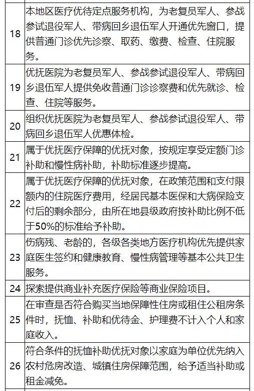 另外,没有列入省基本优待目录清单、尚在实施的优待项目,继续实施。军人军属同时享受国家和军队规定的其他优待。残疾退役军人同时享受退役军人优待项目。