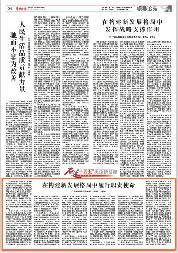 2020年12月25日,《学习时报》刊发国家能源集团党组书记、董事长王祥喜署名文章《在构建新发展格局中履行职责使命》。