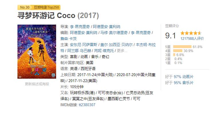 遗憾的是,上映第9天,在当年《寻梦环游记》首度取得单日票房破亿的节点,《心灵奇旅》依然只有3000万左右入账。尽管这比起首日448万的票房,已经有了较大提升,但随着元旦档收尾,在更多新片的竞争下,要复制《寻梦环游记》在内地的票房成绩,基本已经不太可能。