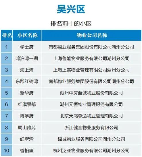 原标题:《湖州中心城市物业最新排名公布,你家小区排第几?》