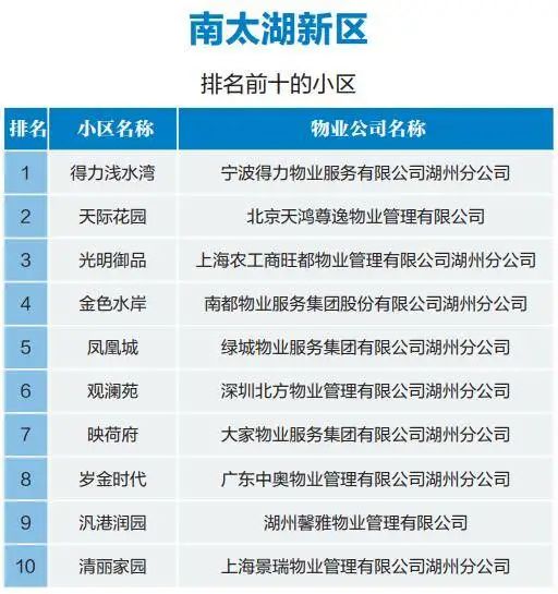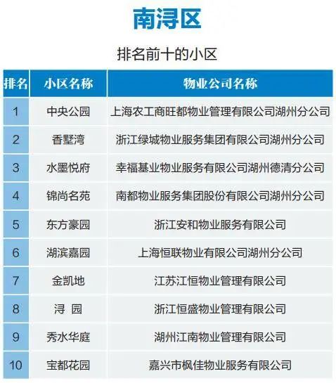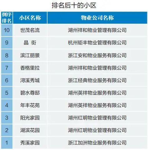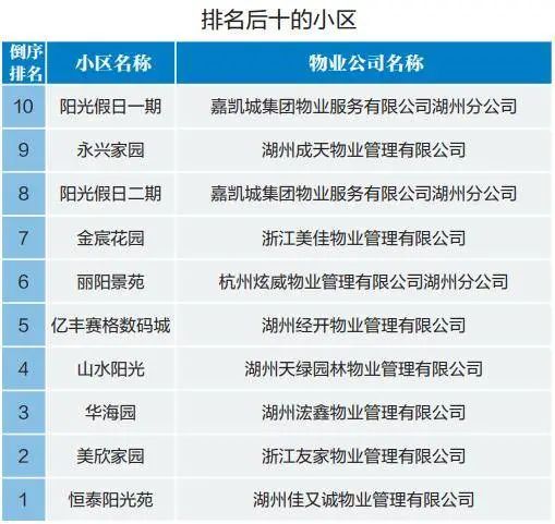 湖州中心城市物业最新排名公布,你家小区排第几?