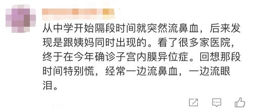 图注:鼻腔异位症的患者分享经历而卵巢等部位,「经血」没有排出途径,就只能淤积在体内。