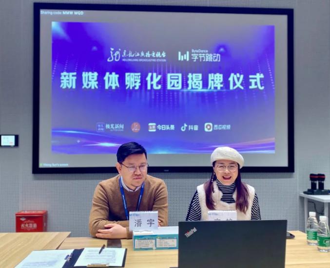 1月6日下午,黑龙江广播电视台与北京字节跳动科技有限公司共同打造的“龙广电&字节跳动新媒体孵化园”签约揭牌。黑龙江广播电视台副台长曾庆怡、北京字节跳动科技有限公司广电合作总经理辛艳等领导出席仪式。