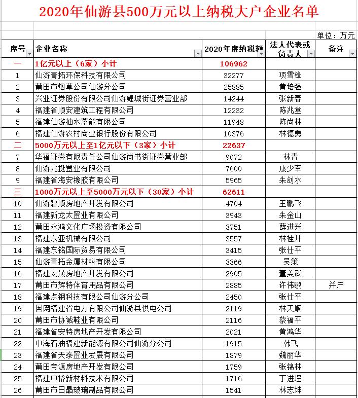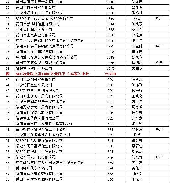 感谢仙游这批纳税大户!