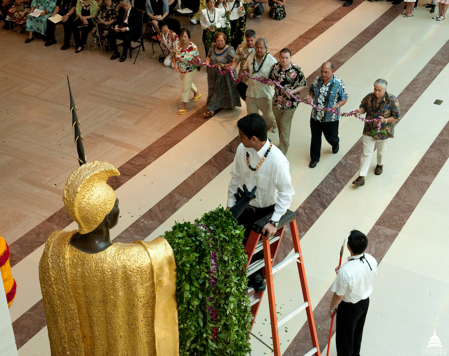 夏威夷州捐赠的雕像是整个国家雕塑大厅中最大的一座雕像。其刻画的人物是夏威夷王国的开创者——卡美哈梅哈一世(Kamehameha I),又称为卡美哈梅哈大帝。