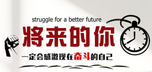 struggle for a better future!哇哦,very的棒啊!大字旁边还有个钟表的图案,一副时不我待的模样,简直是太励志了!