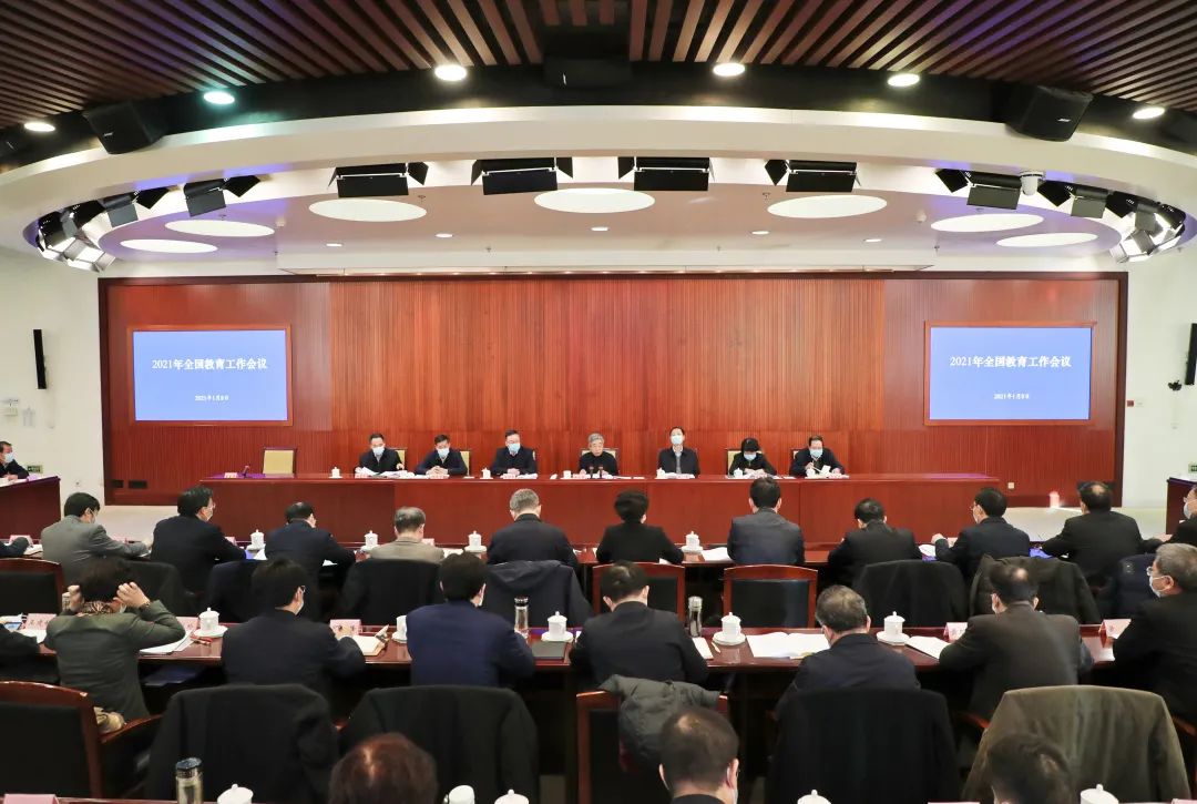 1月7日至8日,2021年全国教育工作会议在京召开。会议强调,要以习近平新时代中国特色社会主义思想为指导,贯彻落实党的十九大和十九届二中、三中、四中、五中全会精神,贯彻落实习近平总书记关于教育的重要论述和全国教育大会精神,按照“五位一体”总体布局和“四个全面”战略布局,增强“四个意识”、坚定“四个自信”、做到“两个维护”,坚持稳中求进工作总基调,立足新发展阶段,贯彻新发展理念,构建新发展格局,以推动高质量发展为主题,以改革创新为根本动力,坚持系统观念,更好统筹发展与安全,坚持和加强党对教育工作的全面领导,全面贯彻党的教育方针,落实立德树人根本任务,坚持发展抓公平、改革抓体制、安全抓责任、整体抓质量、保证抓党建,全面推进依法治教,巩固拓展疫情防控和教育改革发展成果,为建设高质量教育体系立柱架梁,推进教育治理体系和治理能力现代化,为建设教育强国开好局、起好步,以优异成绩庆祝建党100周年。教育部党组书记、部长陈宝生作工作报告。2020年,教育系统扛过了大疫大考,经受了大风大浪,为党和国家工作大局作出了重要贡献