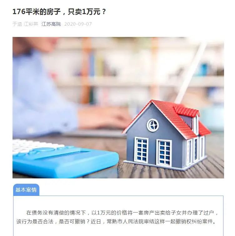 常熟法院审理认为,赵某在银行处有2018年11月所借的30万元本金及利息尚未偿还,又于2019年8月以1万元的明显低价转让名下所有的176平方米的房产,导致法院在执行赵某所涉的金融借款合同纠纷案件时,无财产可供执行,且赵某也一直未履行所欠债务,该低价转让行为对原告的债权造成了损害。因此银行申请撤销赵某转让该不动产的行为,本院予以支持。目前该案已生效。