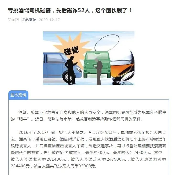 【案例八】专挑酒驾司机碰瓷案【典型意义】