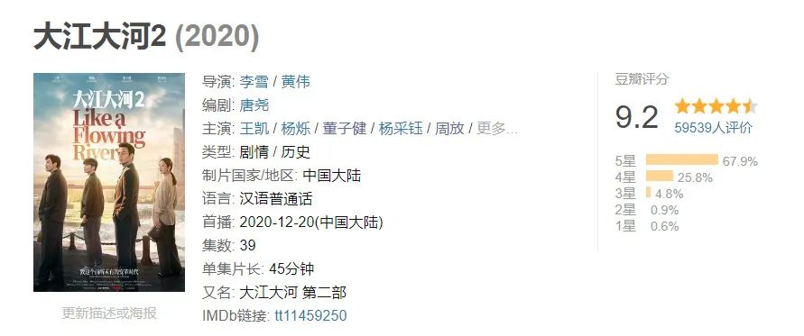 作为2018年高分剧《大江大河》的续作,《大江大河2》打破了续作魔咒,在前作已经8.8分的基础上,又创下9.2分。许多网友表示,两年没白等。
