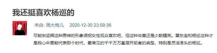 如果说中华文明的根源在黄河与长江,那中国经济腾飞的根源就在国有经济。如果说杨巡是剧中个体经济的代表,那在国企打拼的宋运辉就是国有经济的代表了。