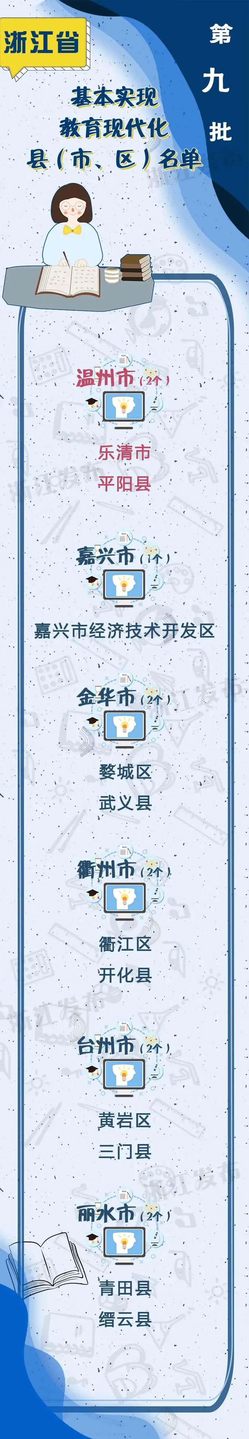 日前,浙江省教育厅、省人民政府教育督导委员会办公室公布了第九批基本实现教育现代化县(市、区)名单。其中,乐清市、平阳县入选。