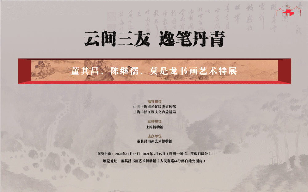 《云间三友 逸笔丹青——董其昌、陈继儒、莫是龙书画艺术特展》展期:即日起-2021年3月15日