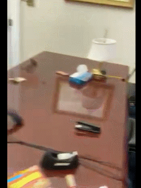 ▲推特视频截图《国会山报》7日报道称,这位参议员上传了一段他的办公室在国会大厦骚乱后一片狼藉的视频,并表示原本放在会议桌上的一台笔记本电脑不见了。
