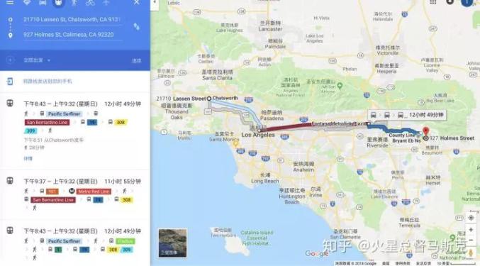 换乘五六次12个小时?最关键的,洛杉矶各个自治城市不好调节,早起规划不好,没有预留出足够的高速公路空间,而且除了社会主义,其他地方拆迁是不可能的,因此洛杉矶城市高速公路密度全球倒数。比如说10号与105之间间隔足足有十公里。洛杉矶城市高速公路密度严重不足。洛杉矶如果没有公共交通,按照数学来讲,那么越巨大的城市需要高密度快速路网(由于出行距离增加)。洛杉矶50年代规划之初的高速路网只修建了三分之一。剩下的再也建不了了。