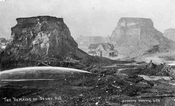 1910年西雅图用水力采矿技术切削丹尼山这个方案可谓一石三鸟: