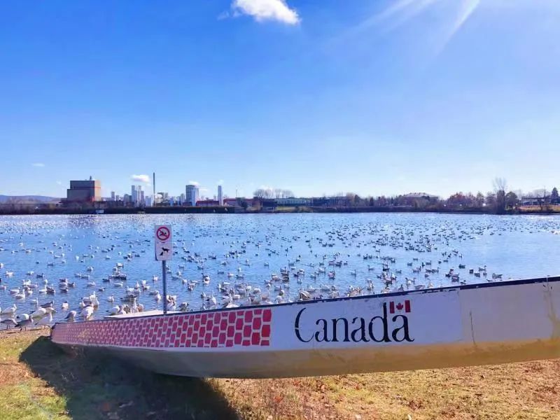 这个湖是一个人工水库,面积不大,一眼就望到了对岸。习惯了蒙特利尔天然的大河大湖,这个小水坝湖实在算不上好看。然而就在这片不大的湖面上,聚集了无数的雪雁,恨不得把湖的每一寸水面都铺满了。