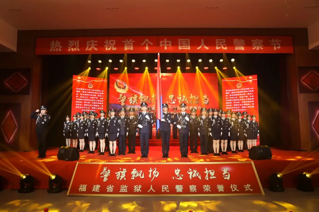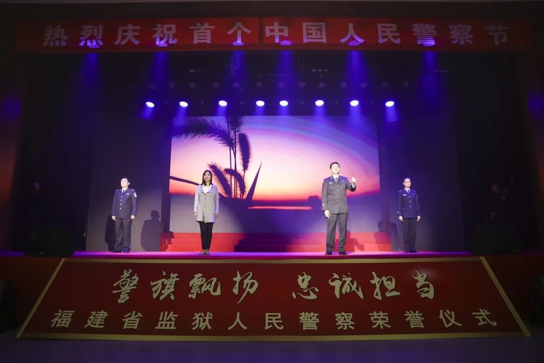 为庆祝首个中国人民警察节,1月7日上午,省监狱管理局以“警旗飘扬 忠诚担当”为主题,举办了2020年度福建省监狱人民警察荣誉仪式,隆重表彰近年来我省监狱系统涌现出来的先进典型,为从警40年和光荣退休的民警颁发荣誉奖章和退休证书。仪式以专题片、情景剧、现场访谈、歌舞等形式生动展现了新时代我省监狱工作丰硕成果和监狱人民警察队伍精神风貌。副省长、公安厅长田湘利,省委政法委常务副书记王敏夫,省司法厅厅长、监狱管理局第一政委邬勇雷,武警福建总队副司令员陈酬等领导和省直、福州市有关部门领导及嘉宾、监狱系统民警职工代表参加了荣誉仪式。