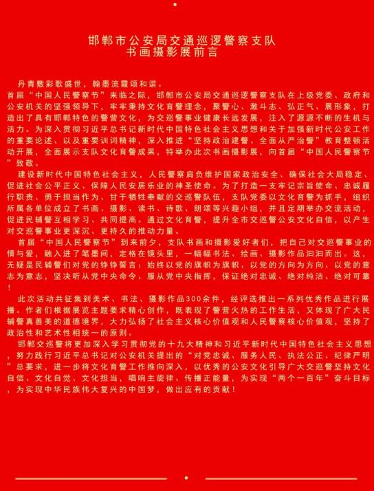 原标题:《【致敬2021首届中国人民警察节】邯郸市公安局交巡警系统美术\书法\ 摄影集——书法篇》