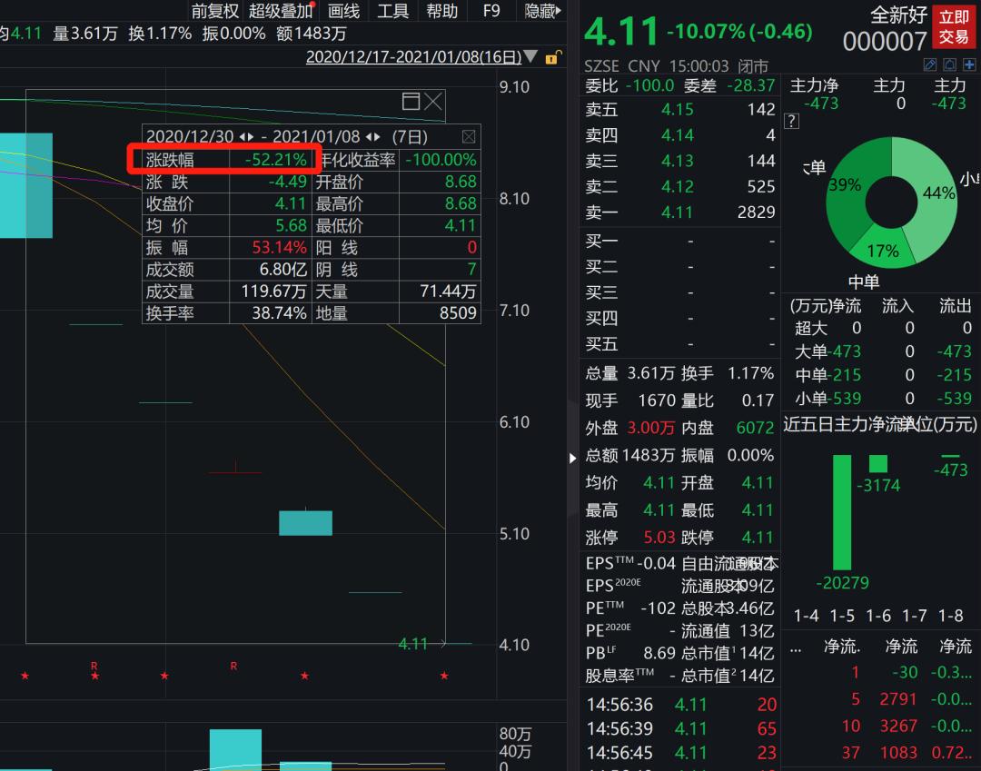 近7个交易日,全新好连续收7个跌停板,股价创下2012年以来新低,市值只剩下14亿元。