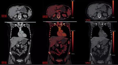 双能量增强扫描可一次性获得常规增强图像、碘图及VNC4.低