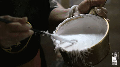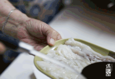 而制作的难点,则在于“挑”的过程,需要手工一个个挑起成型放入水中。这一工序,相当考验手工与力量。